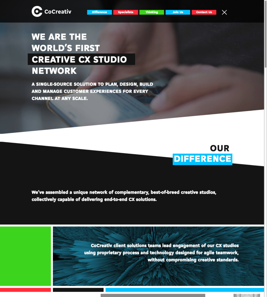 Custom WordPress template built for creative CX studio CoCreativ. This site features scroll-based animation to reveal content as the user navigates the site. All content is editable via the WordPress admin including adding/removing panels and background images.