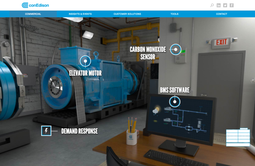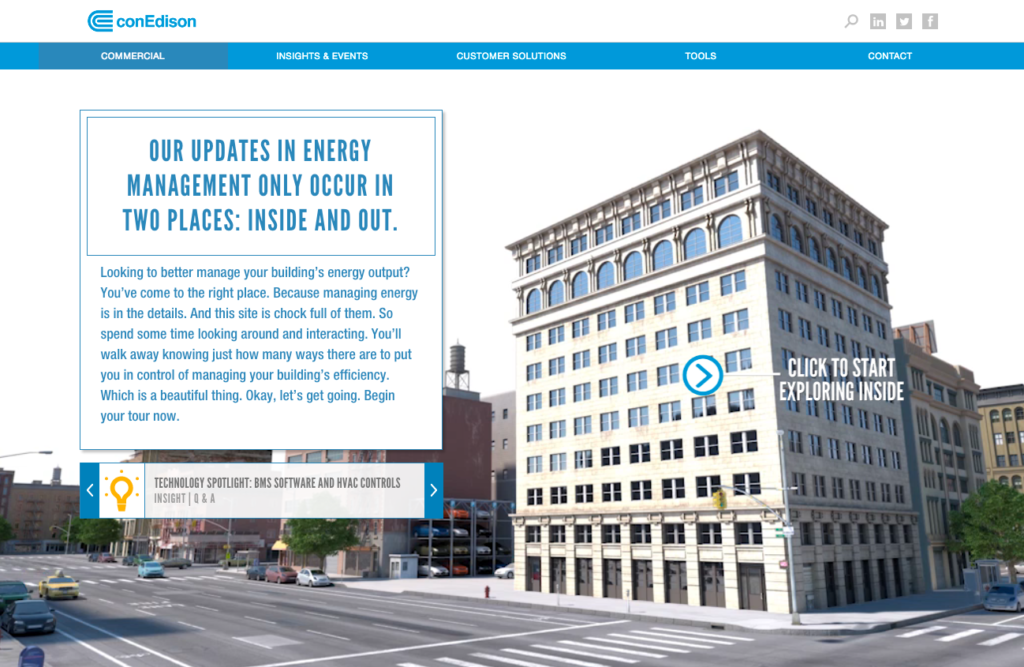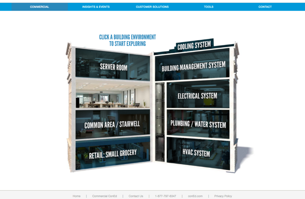 Instructional website for energy company ConEdison to help building managers understand how every little detail of their energy systems can make a difference. Built on WordPress with a custom template to suit a demanding set of technical requirements while offering easy content editing on the back-end. The home page includes animated video transitions as the user explores an energy efficient building. Elements of each room “deconstruct” to offer a closer view and detailed information. A room to room transition takes the user on a video “journey” through the building’s infrastructure. All site content is editable through custom post types built into the WordPress admin.