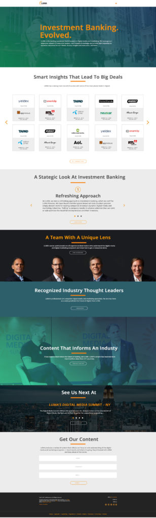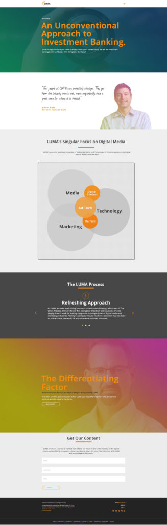 Custom WordPress site built for investment bank LUMA Partners. The site features a custom WordPress template, custom post types for each category of content and a layout editor.