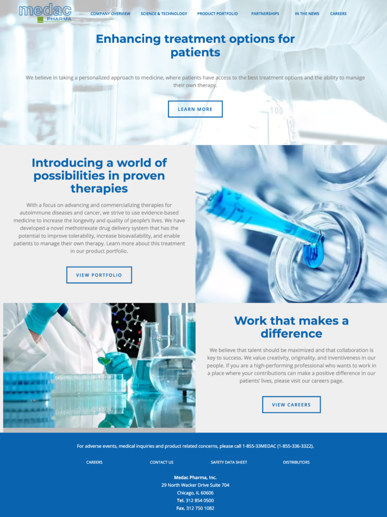WordPress website for pharmaceutical company Medac. Features custom built CMS pages for easy content editing, using the Advance Custom Fields plugin. Product timeline widget to display release dates in chart format. Background images have optional parallax scrolling effect.