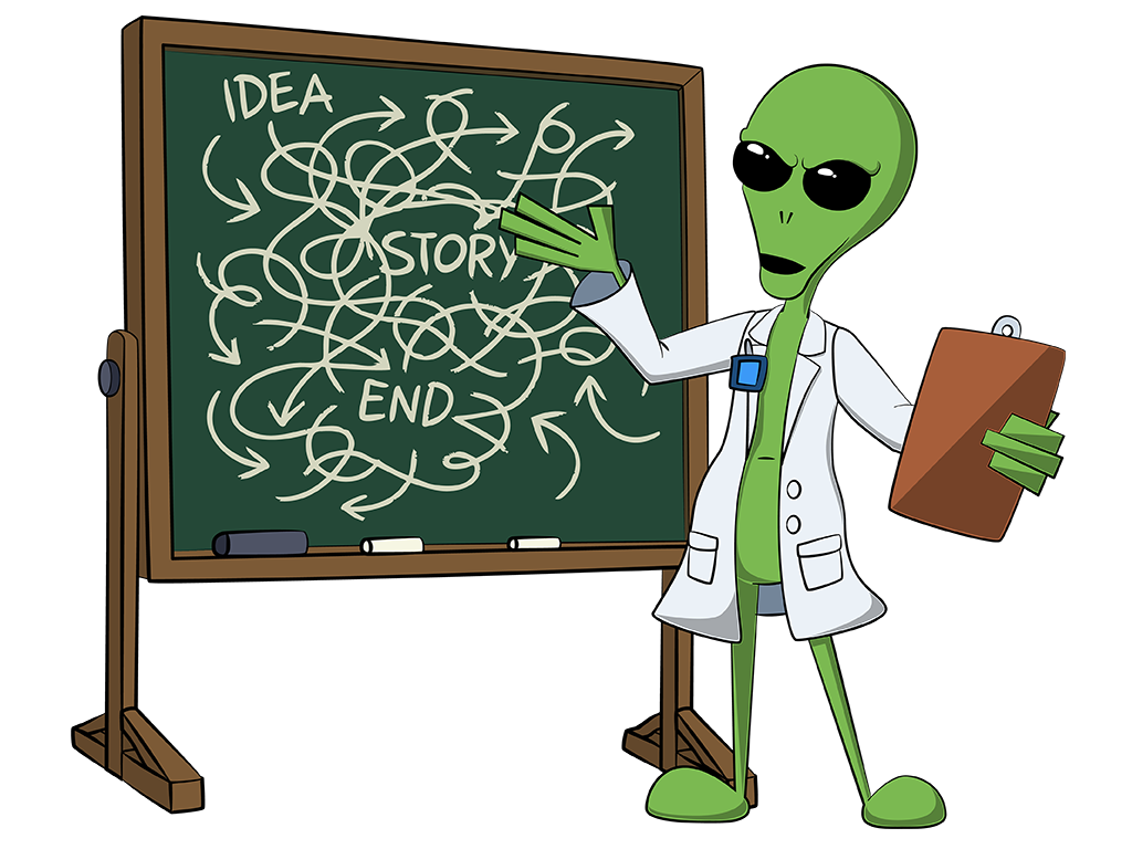 Ever since I began sketching Alpha Zeta, the lanky four‑foot‑tall Reticulan, I’ve wanted his adventures to be an ongoing web‑comic. My biggest obstacle was building story momentum. Plot threads dissolved after one strip, inside jokes never evolved, and Alpha’s personality morphed like a glitchy holodeck.